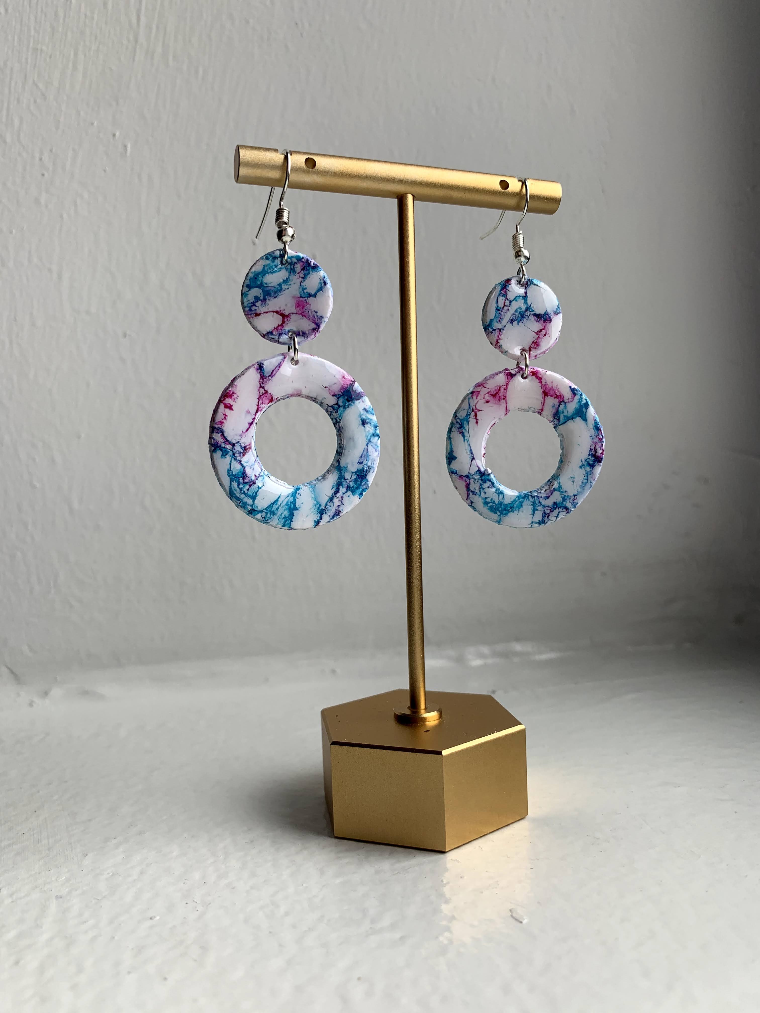 Pink/Blue Marble Earrings