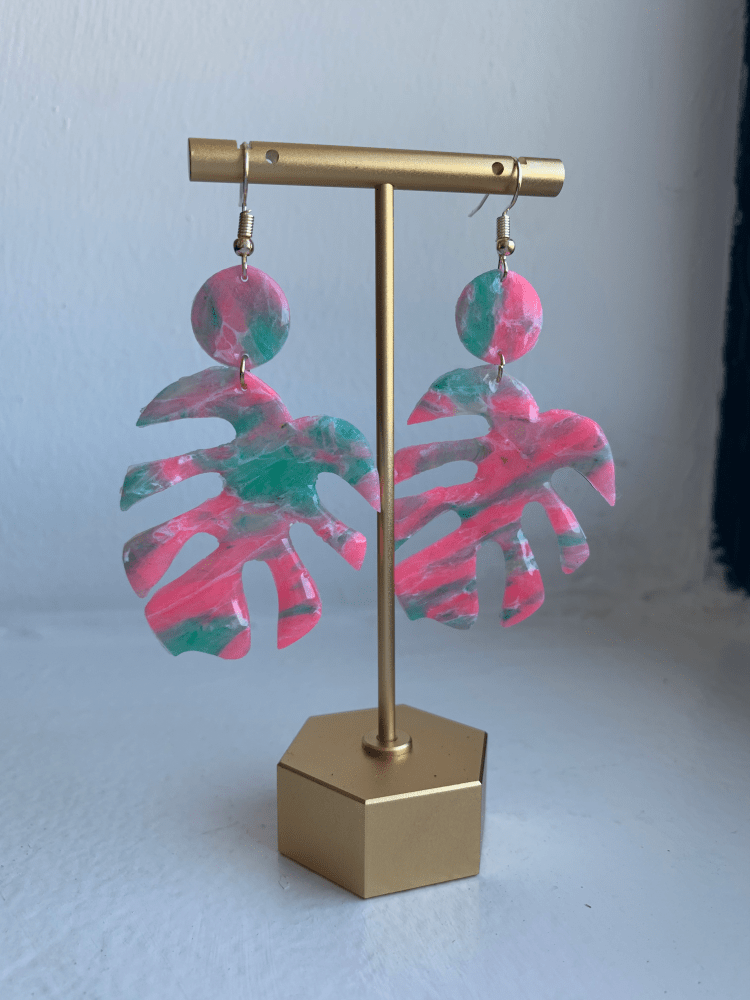 Monstera Pink & Turquoise Earrings